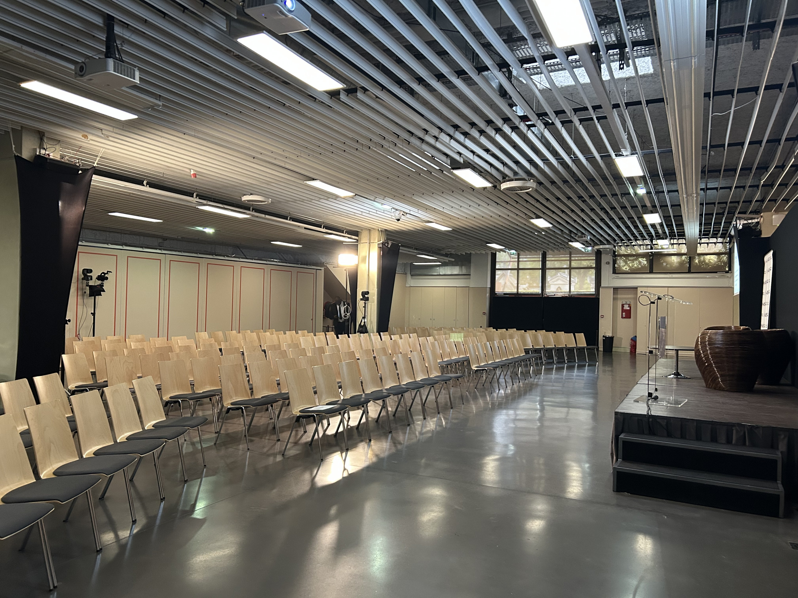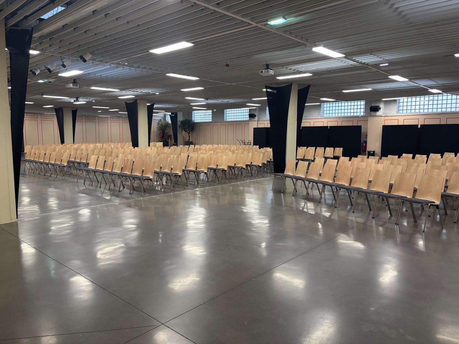 Nous mettons à votre disposition tout le mobilier nécessaire (chaises…) ainsi qu’un équipement technique complet : vidéoprojecteur, écran, régie son et lumière, micros, paperboards, pupitre, etc. Tout est prévu pour faciliter l’organisation de votre événement, qu’il soit professionnel ou privé.