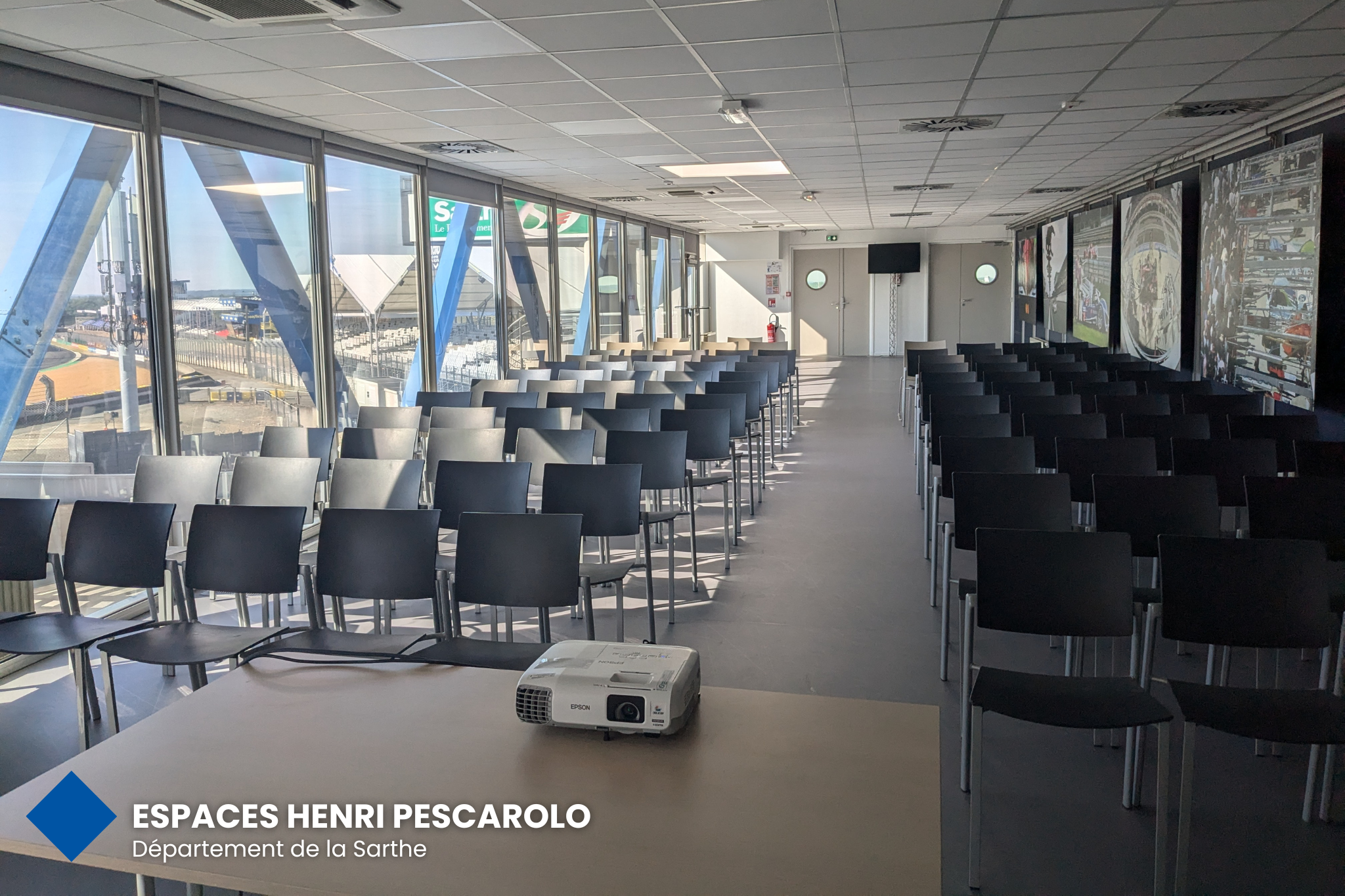 Vous serez séduit par la situation atypique de la salle qui vous offrira une vue panoramique des stands jusqu’au Dunlop. Cet espace est parfaitement adapté à la tenue de vos diners et de vos cocktails.
