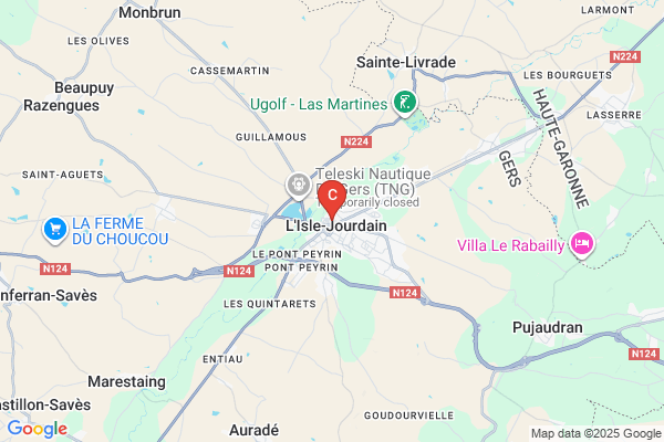 Une fois arrivé à l’Isle Jourdain, suivre les panneaux « Centre Ville »