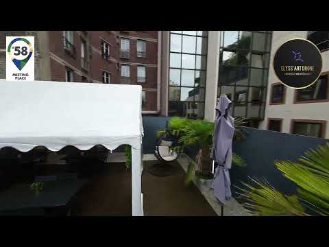La très grande terrasse entièrement végétalisée de 200m² est équipée de nombreuses tables et chaises et un grand espace lounge.